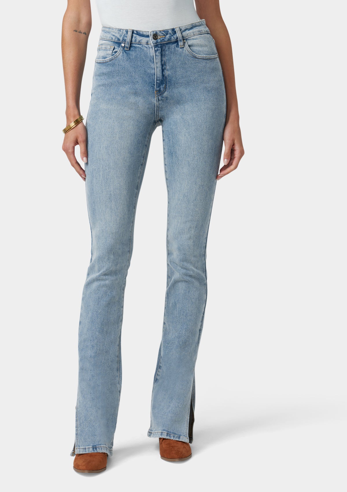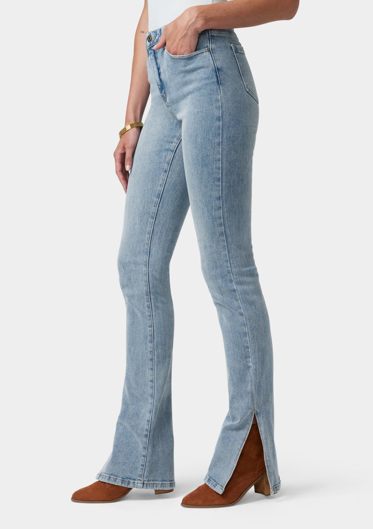 So classic and just as flattering. The Anderson straight-leg jeans feature an ultra high-rise silhouette that’s slim through the thigh and flares to a side-slit detail.