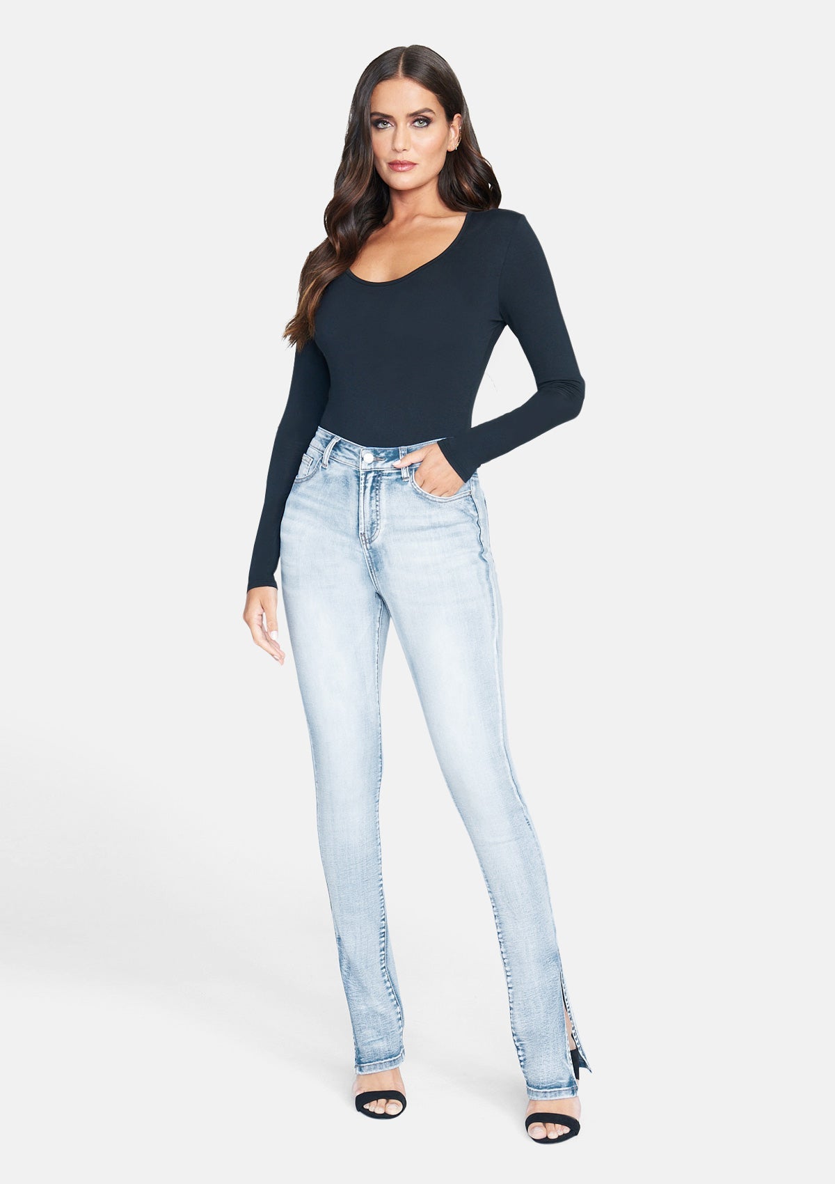 Make a statement in the Cora high rise skinny jeans! Featuring an acid wash rinse and side slit hem detail. Super trendy & ready to receive compliments!