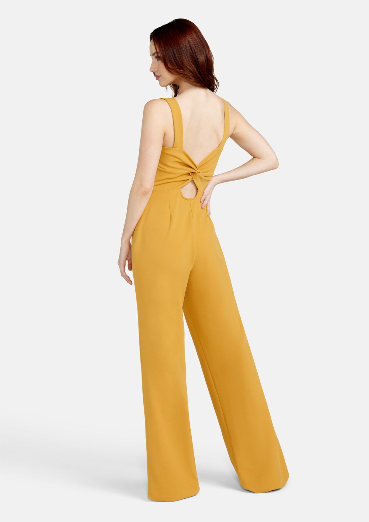 A twist-back detail defines this classy jumpsuit styled with breezy wide legs for a polished look. The Lianna jumpsuit goes from desk to dinner in a flash.