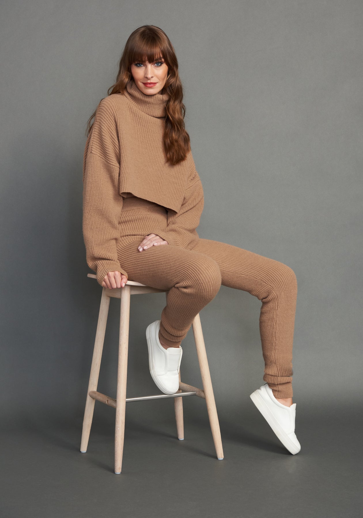 The Tina Knit Joggers feature a wide waistband and a medium-weight knit material, ensuring warmth during the Fall seasons. Pair it with the Tina Knit Sweater for a casual coordinated look.