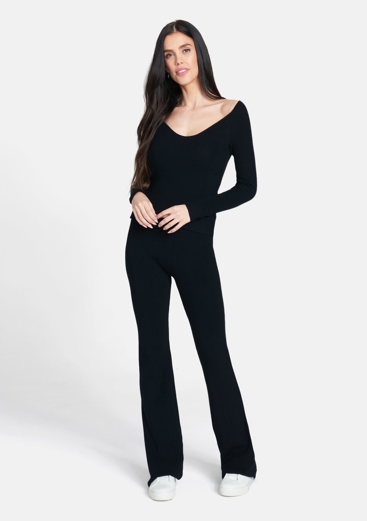 Lounge in style with this comfy knit bottoms. The Whitney pants feature a high rise fit and flare hems. Super comfy & lightweight knit fabric. Pair it with the Whitney Knit Top for the ultimate lounge look.