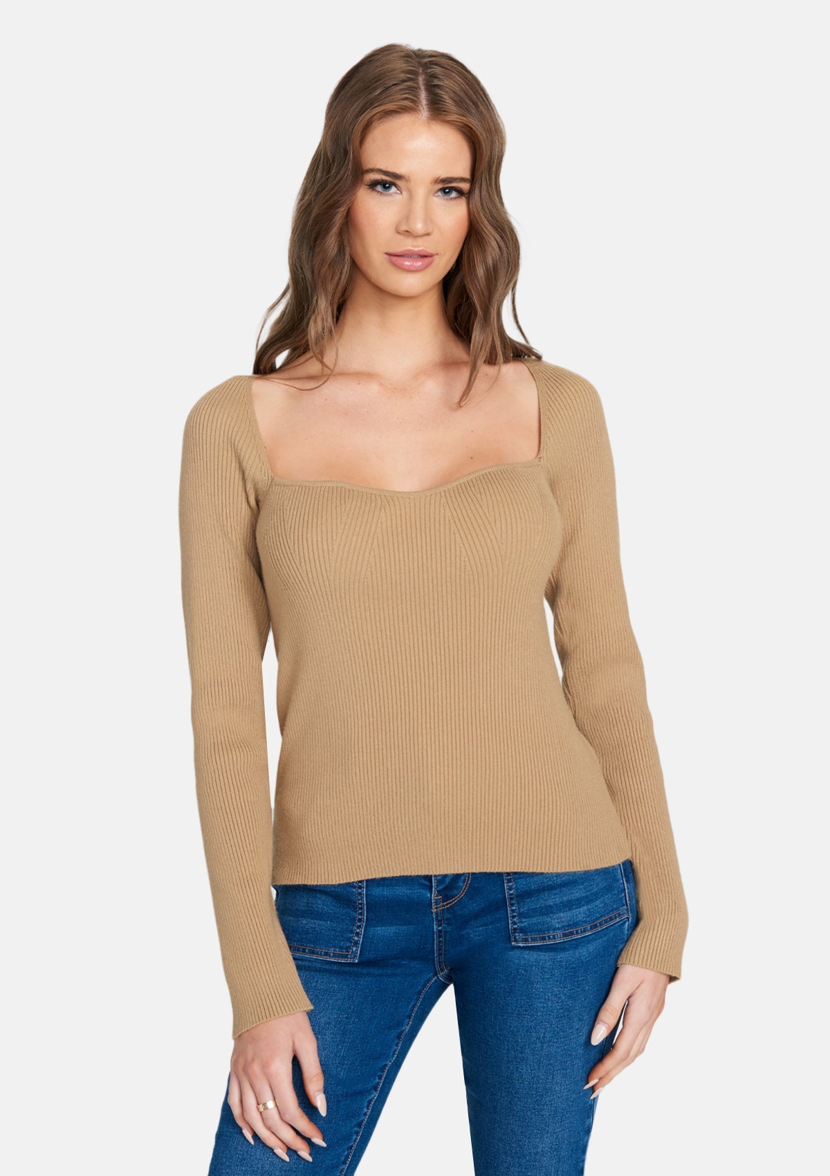 This day-to-night knit top is designed with a sweetheart neckline and soft ribbing for a curve-accentuating charm.