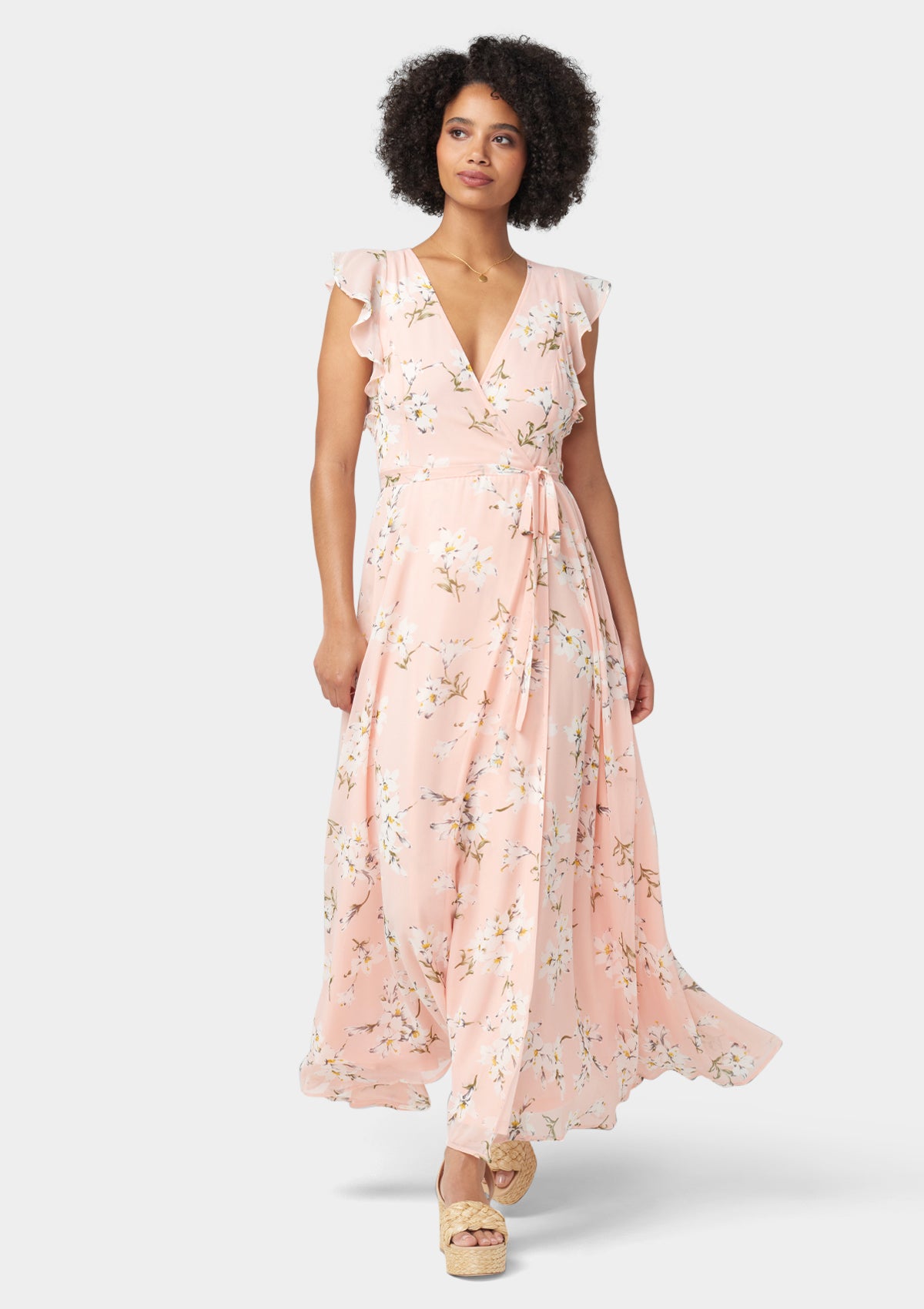An eye-catching floral motif enlivens this pretty maxi wrap. The Bella Maxi Dress is simply elegant and perfect for any Spring and Summer occasion.
