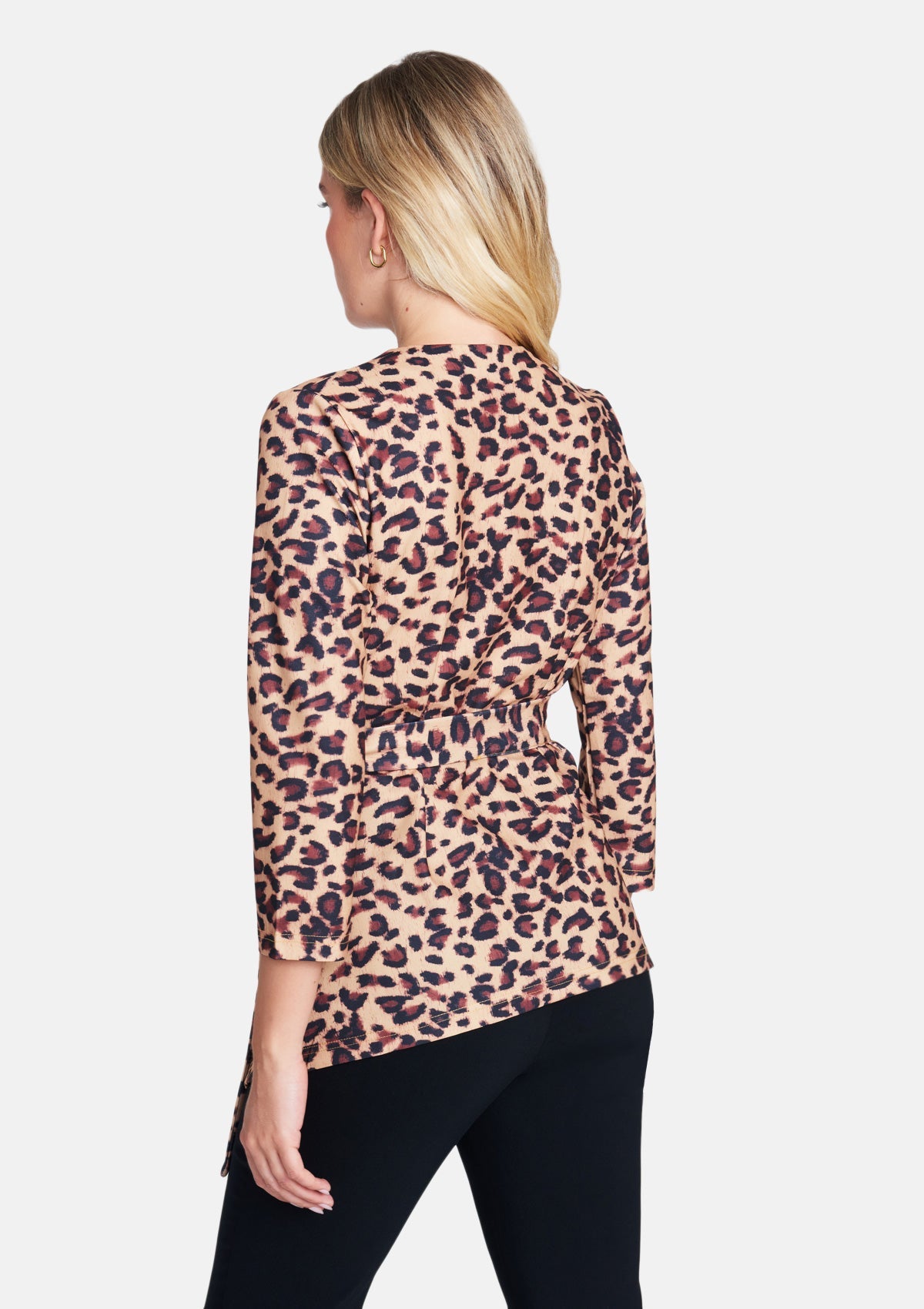 A classic wrap silhouette. The Courtney top features ¾ sleeves, animal print, and a conservative v-neckline. The perfect top to add some sass to your work wardrobe.