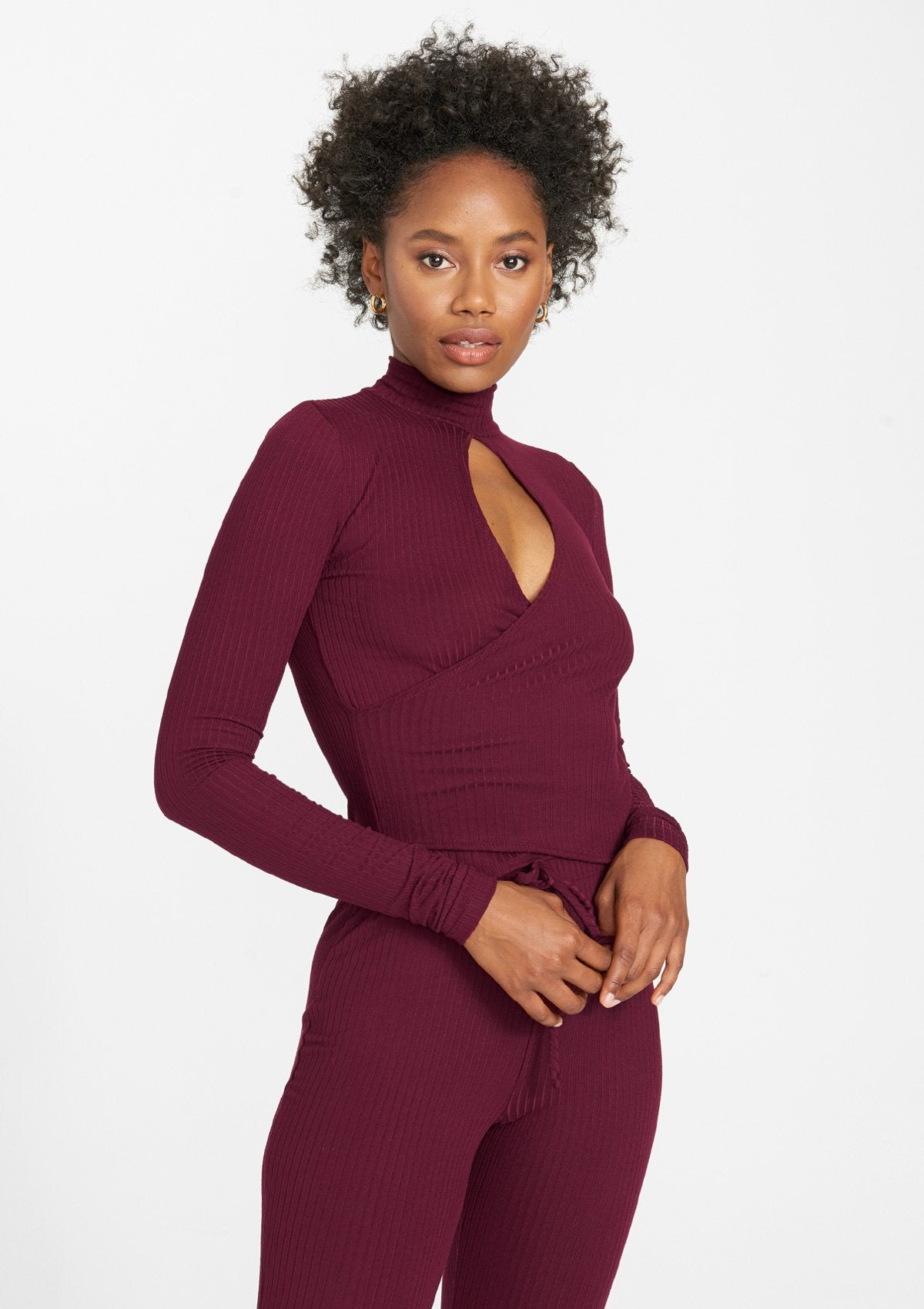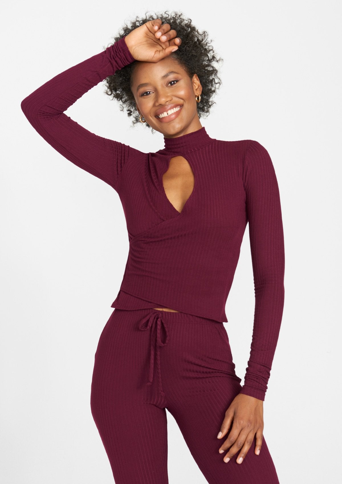 Our Tall Rib Knit Long Sleeve Cropped Top makes the perfect set paired with our Tall Elana Rib Knit Pants. With a high neck, keyhole detail, and a faux wrap to flatter you while keeping you comfortable.