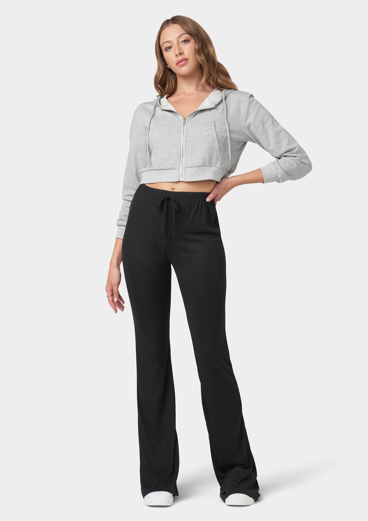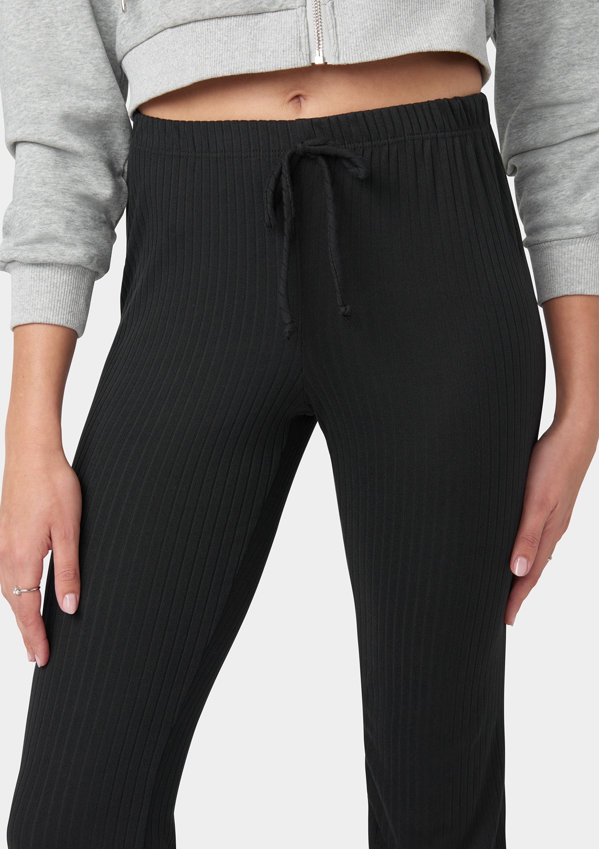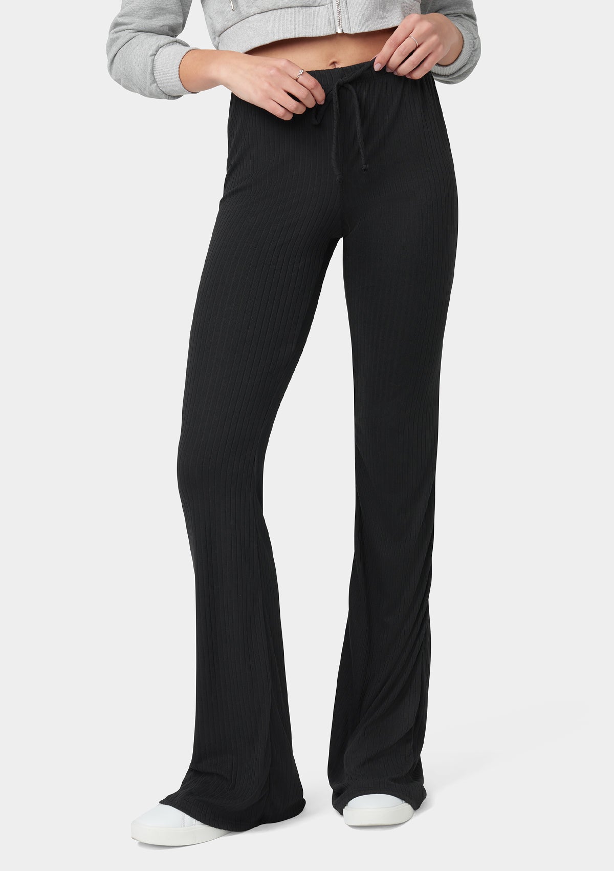 Lounge in style. Elana features a lightweight rib knit fabric, faux front tie and flare leg. Pair these pants with our Elana Rib Knit Top for a casual coordinated look.