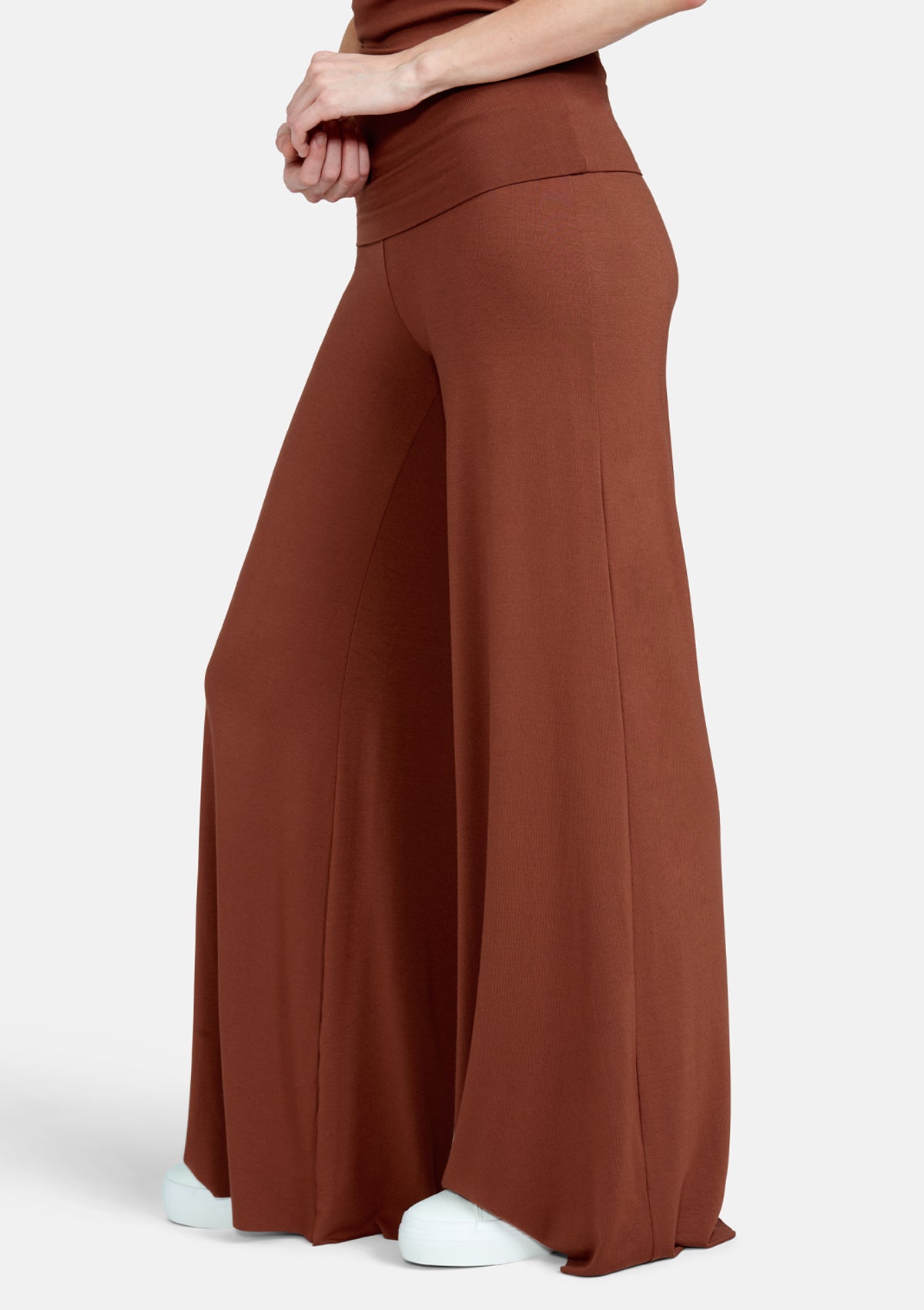 Made from an ultra-soft slinky fabric, the Evelyn wide leg pants complement the Evelyn scoop neck top perfectly. The comfortable design will make you feel relaxed and stylish at the same time. The pants have a fold-over waistband and wide leg silhouette that adds elegance and movement to your overall look. Wear them together for the ultimate loungewear set suitable for any casual event.