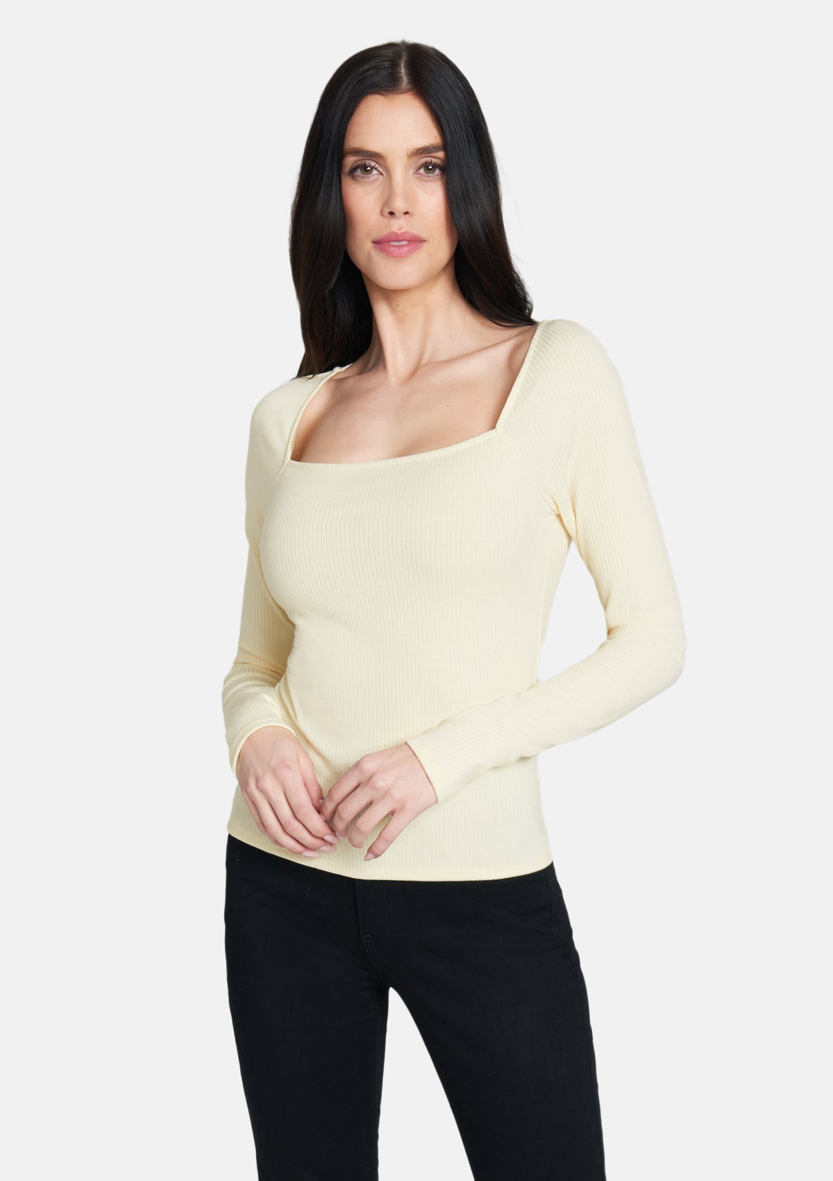 This versatile ribbed top offers a flattering fit and a trendy square neckline. The Harper is easy to wear and easy to style.