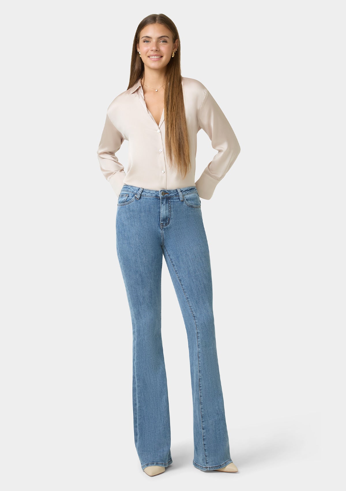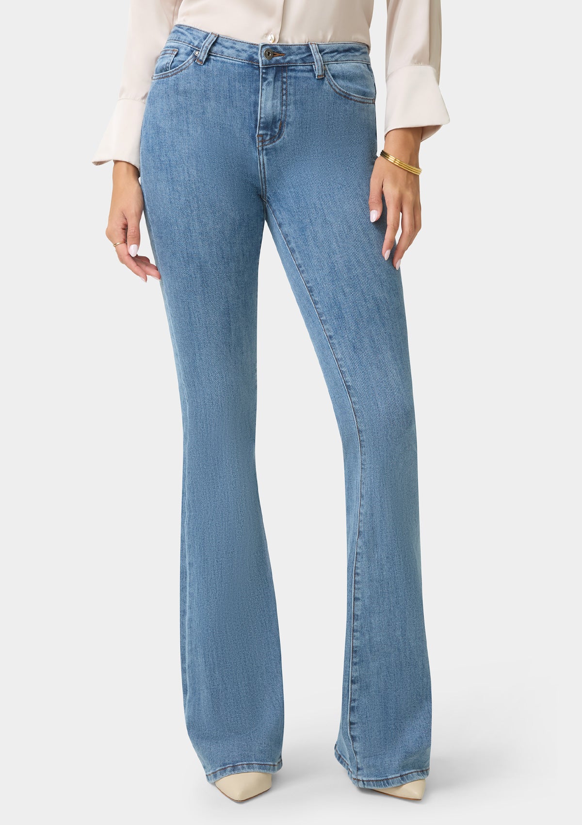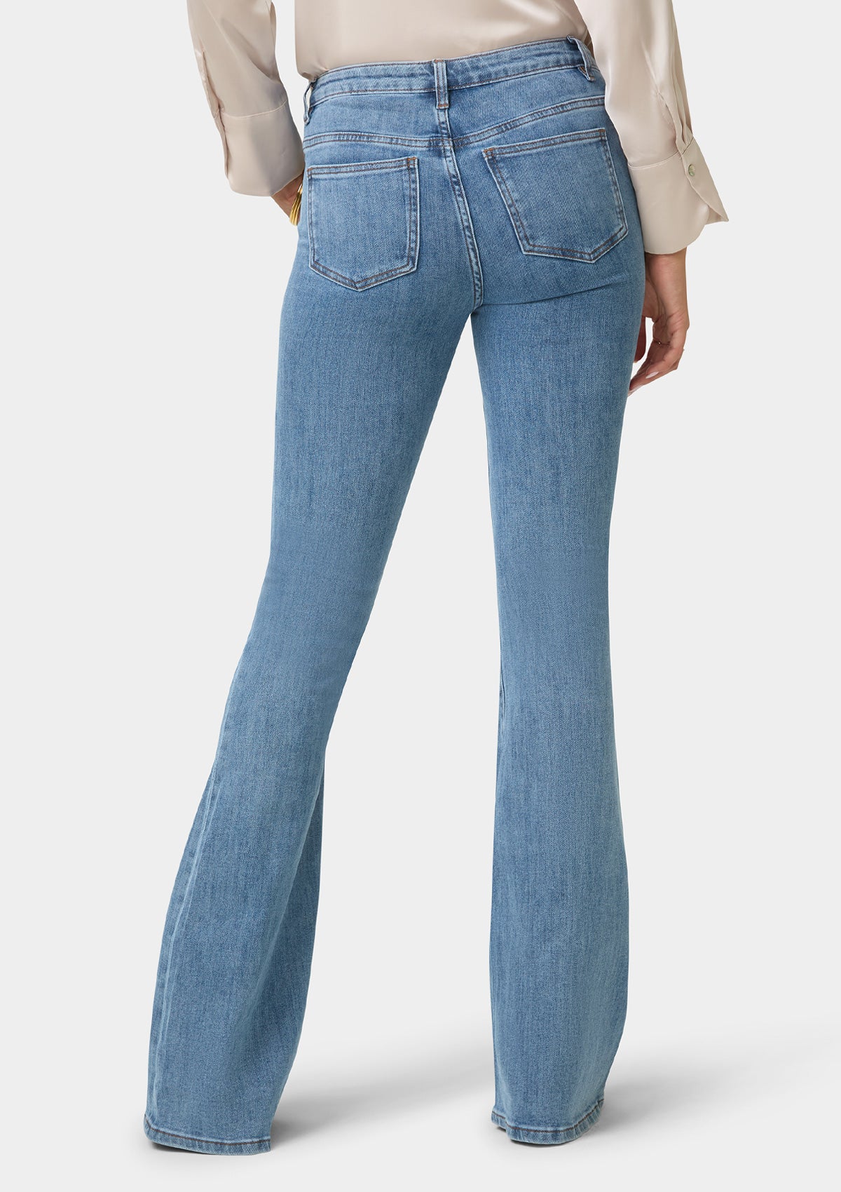 Forever timeless and just as flattering. The Maria high-rise jeans feature extreme flare hems. Fall in love with these retro-inspired stunning jeans.