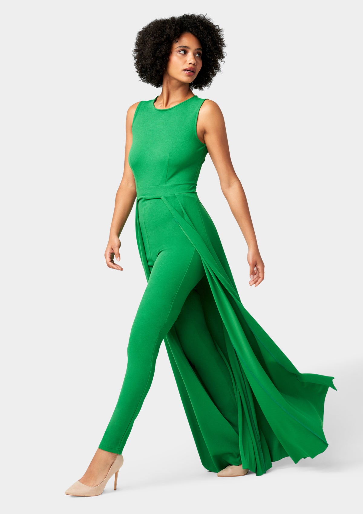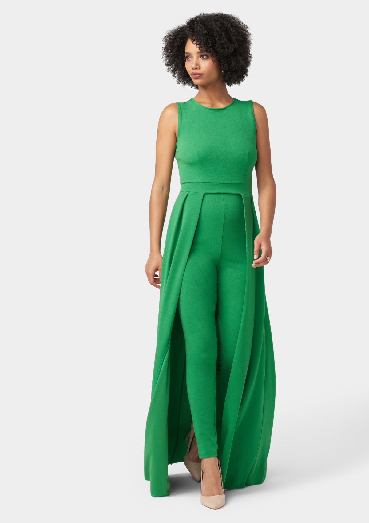 The Milan Jumpsuit is a fashion-forward piece that combines style and comfort in one beautiful design. Made from high-quality ponte fabric, this jumpsuit offers a luxurious feel and superior durability that will last for years to come. This is a statement piece that will turn heads and make you feel confident wherever you go. The skinny hems give it a sleek and modern look, while the skirt overlay adds a feminine touch that's both flattering and chic. Versatile for any occasion!