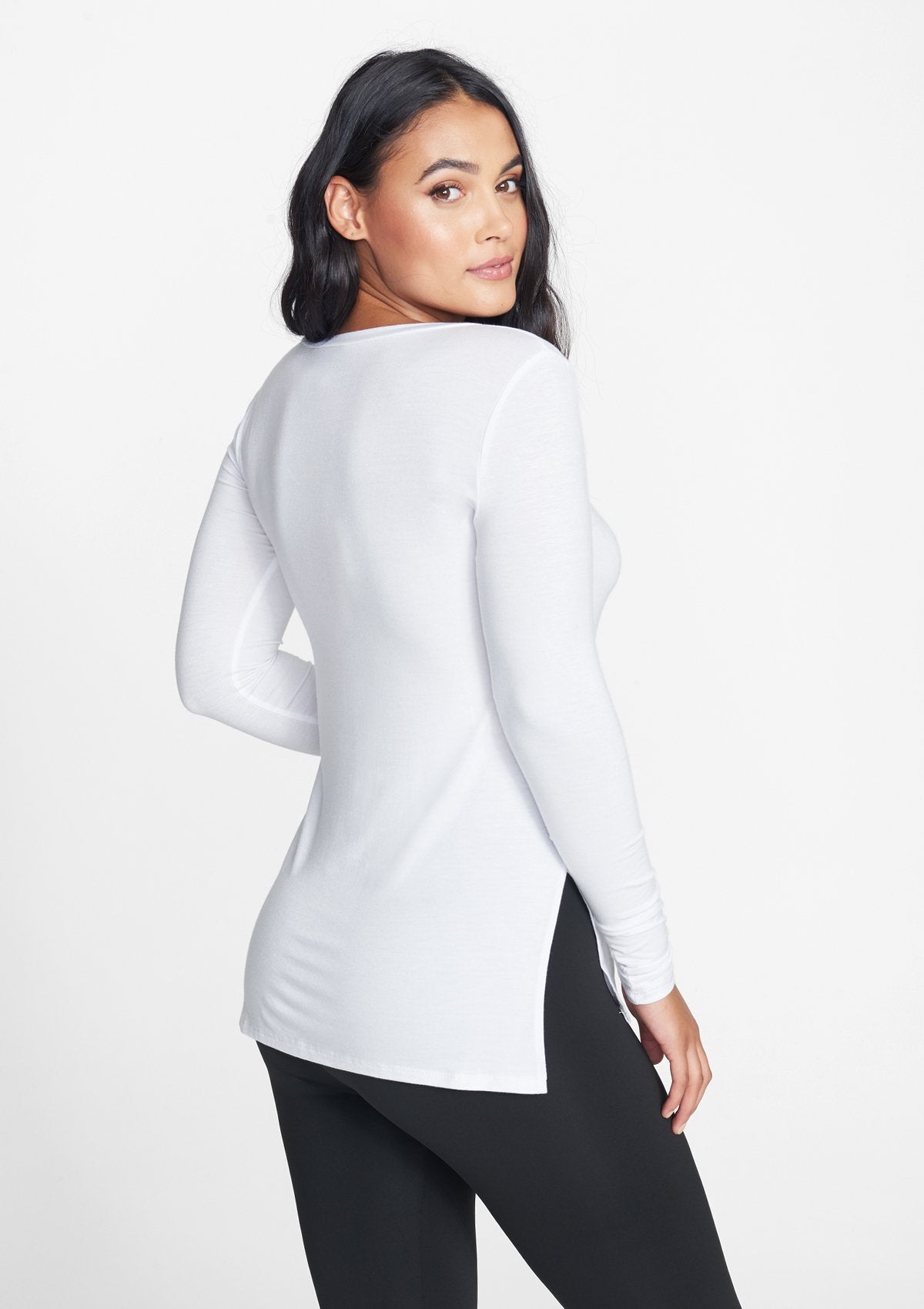 Your new favorite basic is here. We created the perfect Long Sleeve Split Hem Tee for you to pair with your favorite comfy or casual outfit. Offered in Black and White.