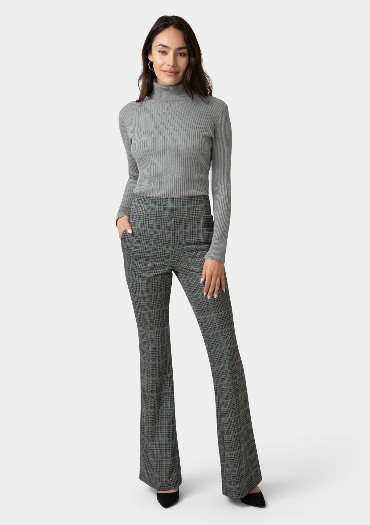 A staple fit, the Samara high rise printed pant features a wide waistband and a flare hem, giving you the comfort of leggings with a modern twist. From office hours to off-duty days, this subtle plaid adds just the right amount of pattern to your wardrobe rotation.
