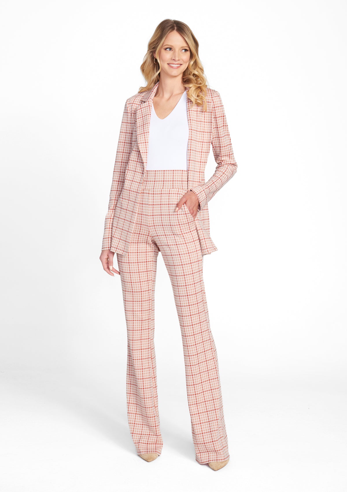 A staple fit, the Samara high rise printed pant features a wide waistband and a flare hem, giving you the comfort of leggings with a modern twist. Pair it with the Tall Sasha Printed Blazer for a fully styled look.