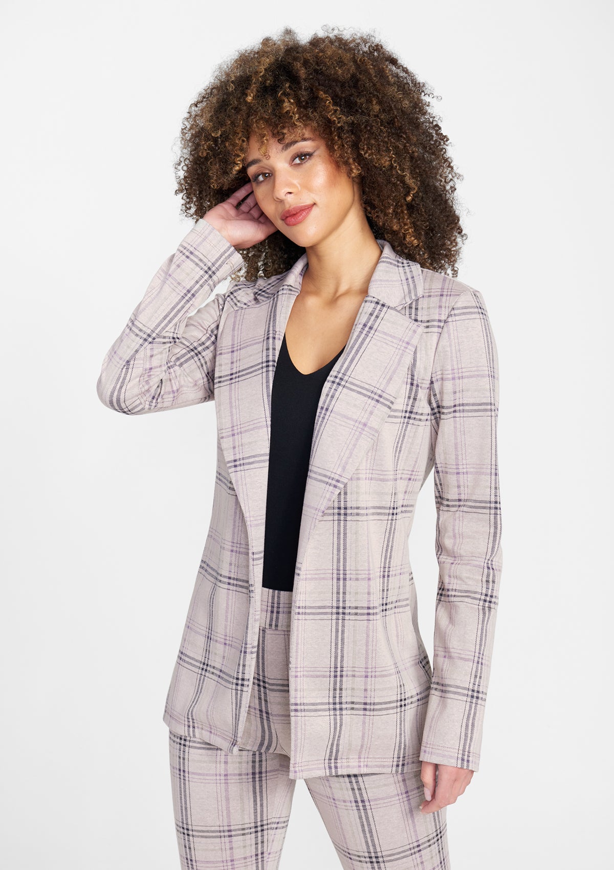 Our Sasha Blazer has a roomy, menswear-inspired shape with a modern twist. No button closure, just a casual throw on blazer that adds the perfect amount of polish to any attire. Pair it with the Tall Sasha Slim Pants for a fully styled look.