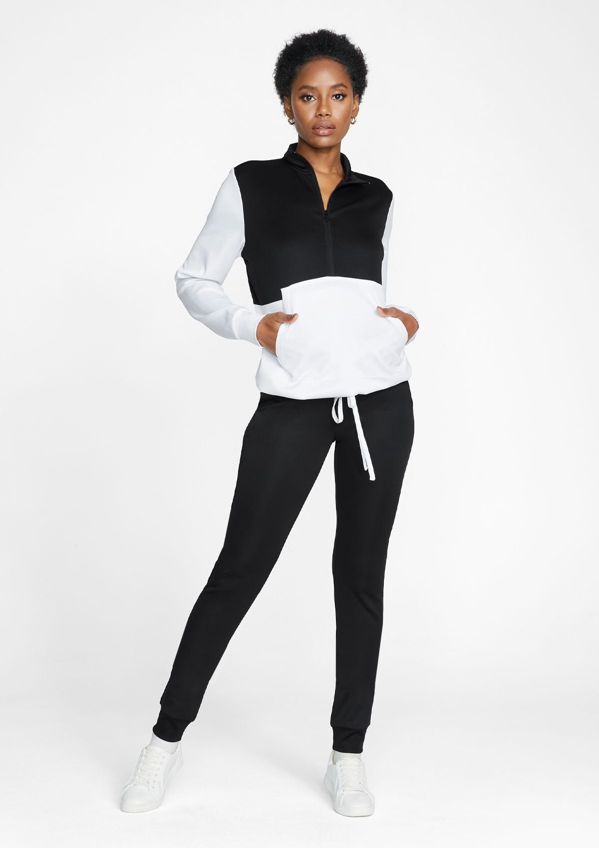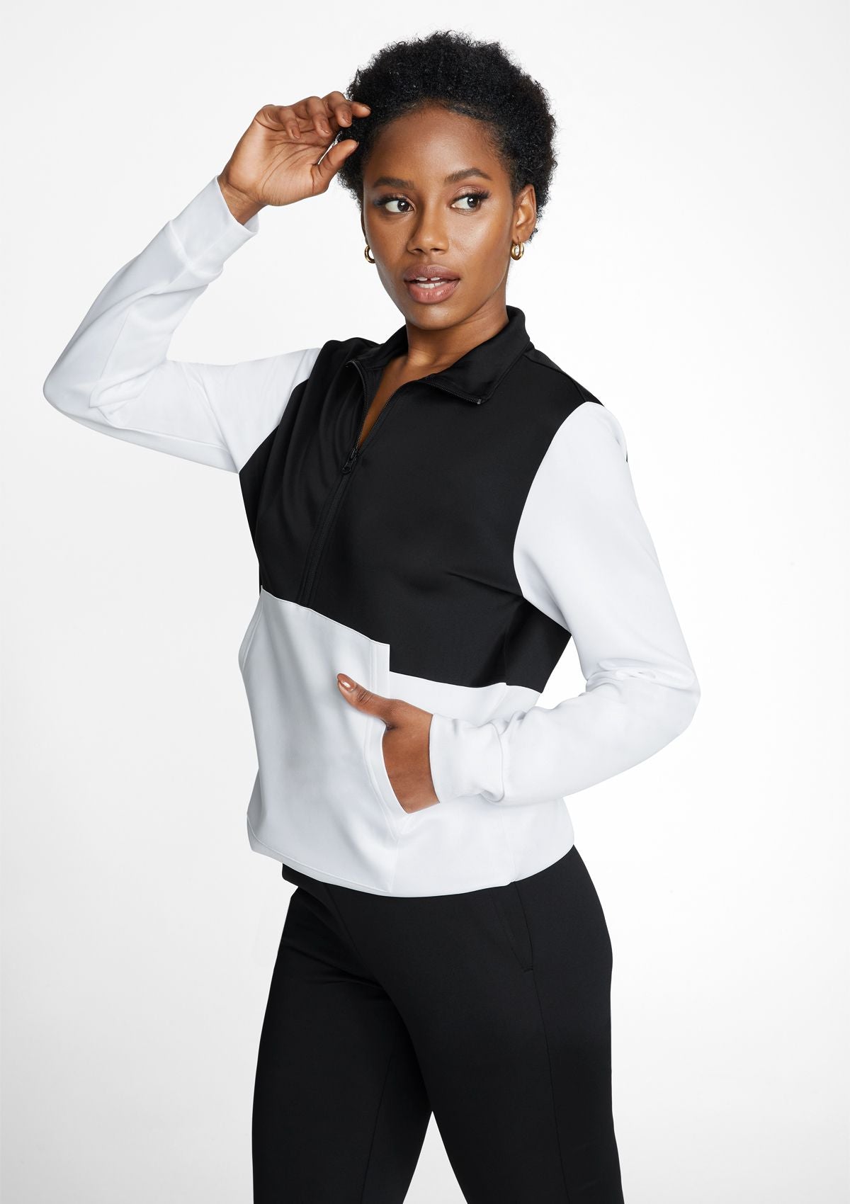 Get your studio-to-street look with the Tianna Track Pullover. Featuring a silky smooth tricot fabric, half-zip closure, drawcord waist and cuffs. Complete with a large front pocket for stashing the essentials. Pair these with the Tianna Track Joggers for an effortless coordinated look.